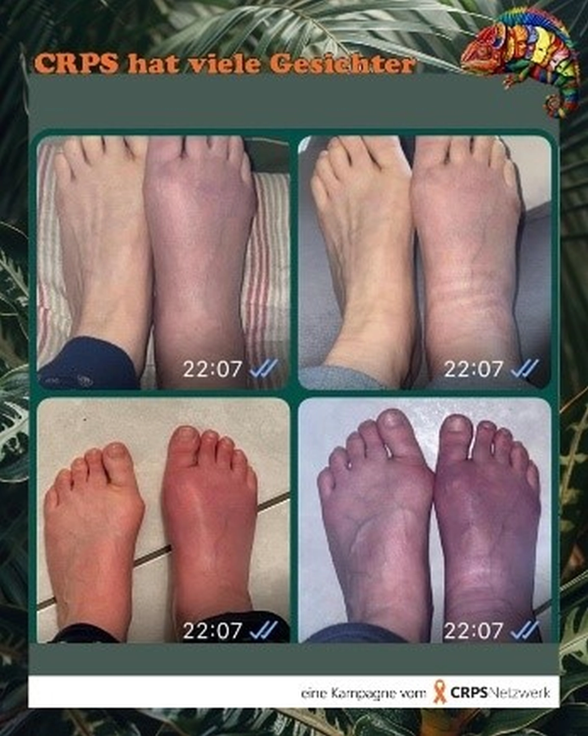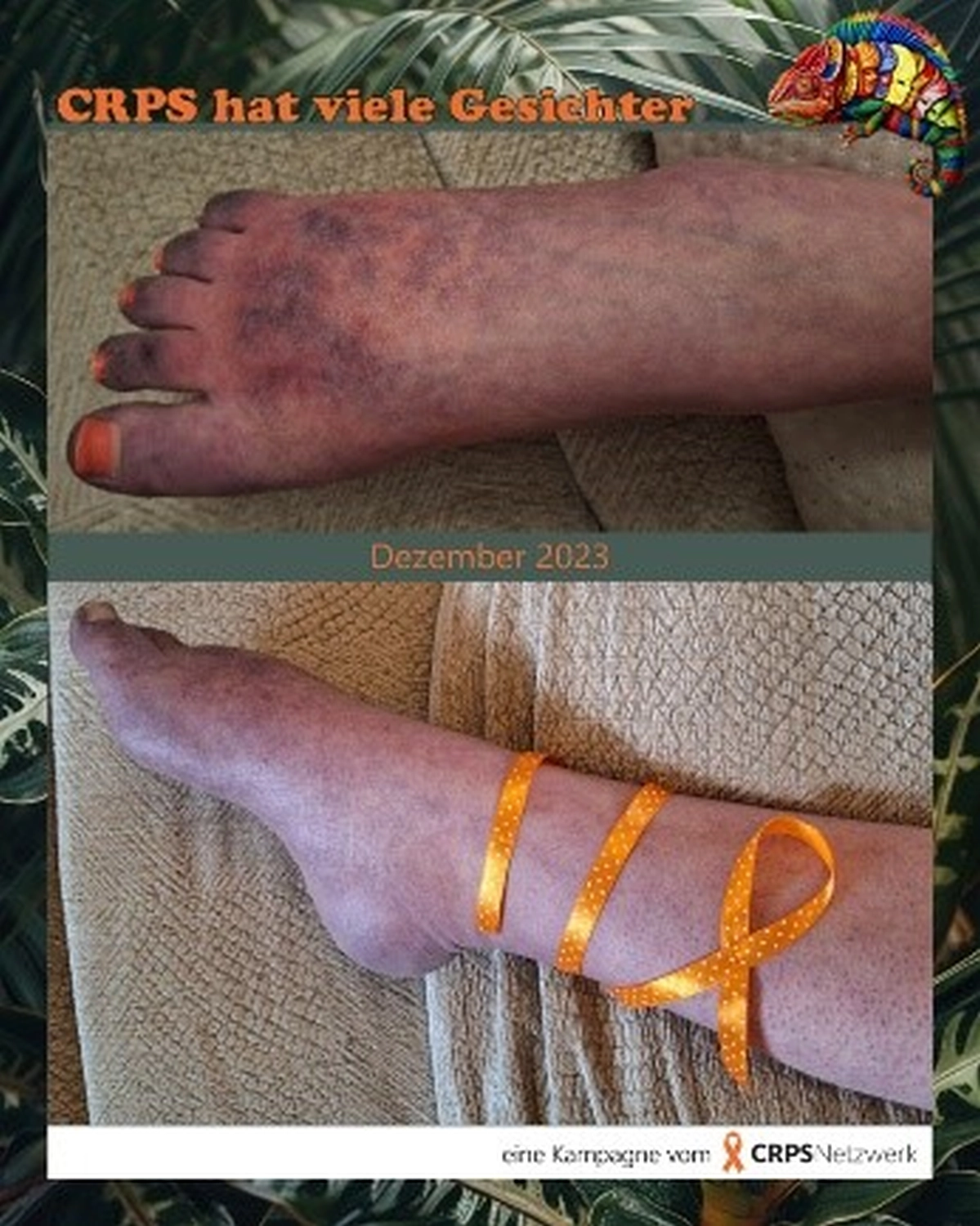 Wir brauchen dich! Damit sich die Behandlung unserer Erkrankung verbessert, haben wir eine Kampagne gestartet. Bist du auch dabei? Wir wollen zeigen: CRPS ist in vielerlei Hinsicht ein Chamäleon! Helft ihr uns, das mit Bildern und Videos von euren betroffenen Körperteilen zu untermauern?
